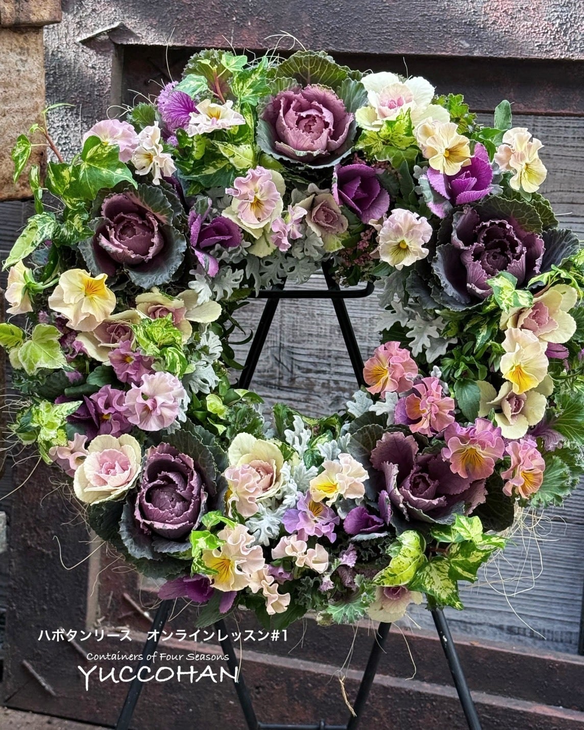 このリースの花材をまるっとお送りするハボタンリースセットを