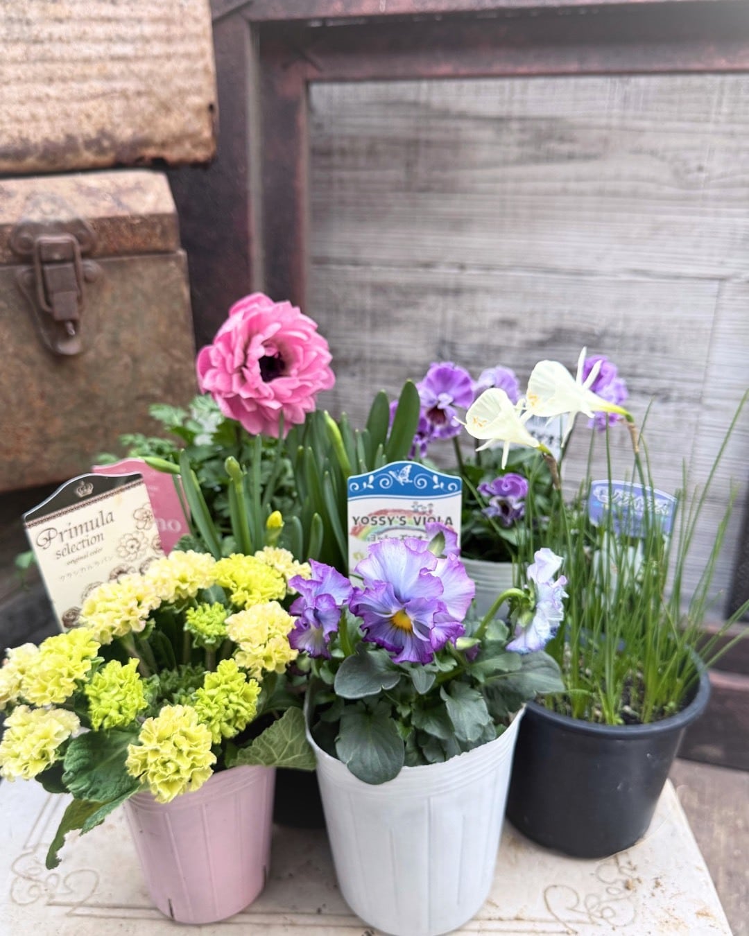 アネモネ・ビオラ・プリムラ・水仙を組み合わせました。